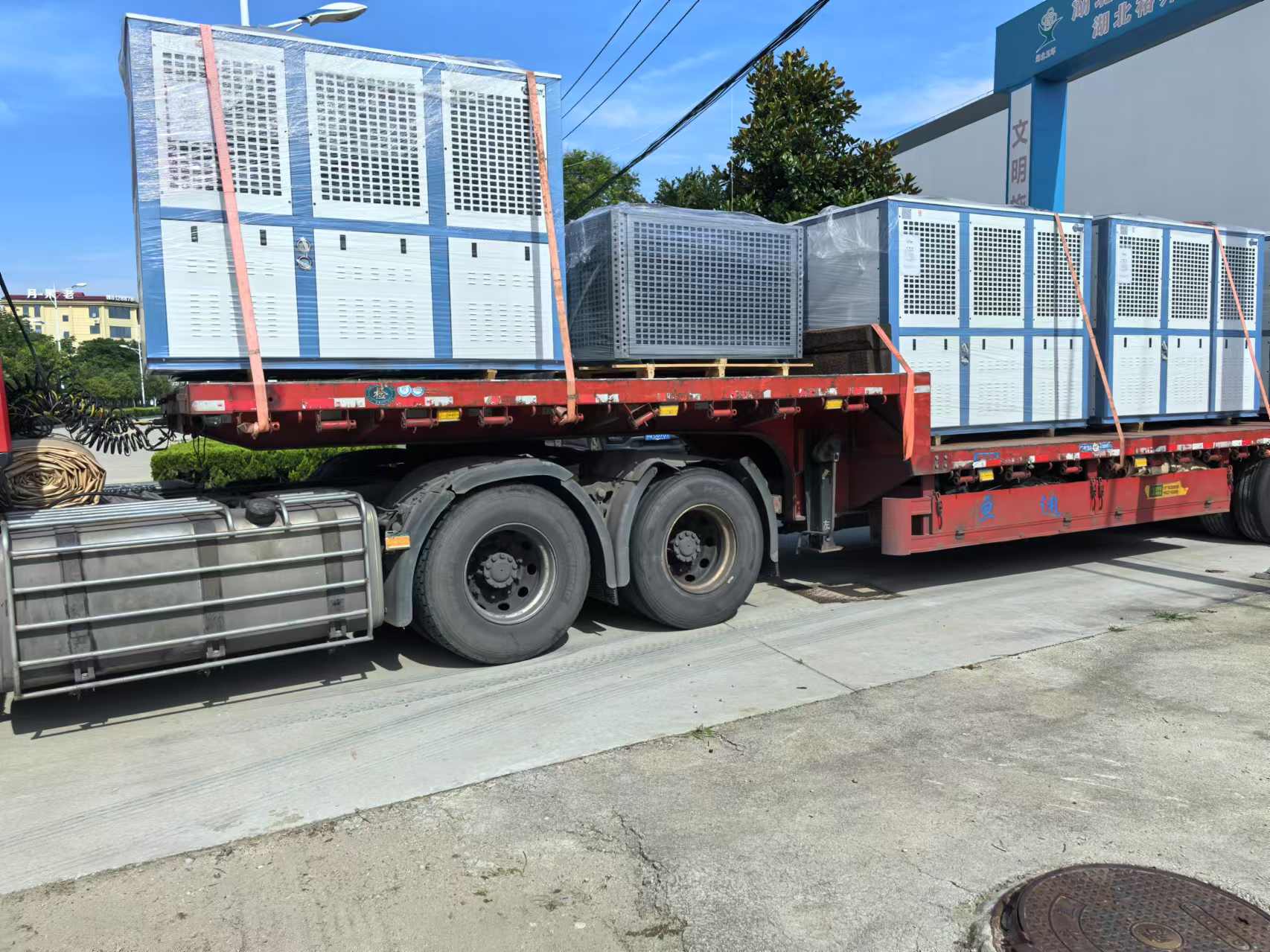 采用五台艾默生谷轮全封闭涡旋压缩机风冷冷凝箱式制冷机组(核心部件艾默生谷轮全封闭涡旋压缩机ZB115KQ中温专用);